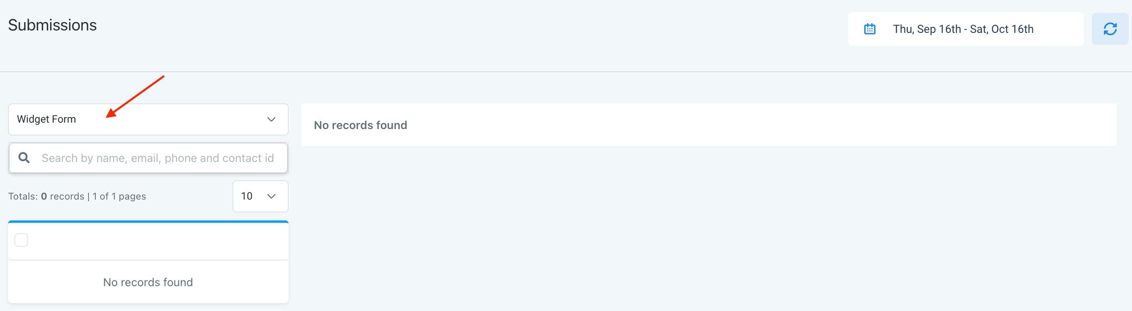 Step 1: Viewing Chat Widget communications in Form Submissions