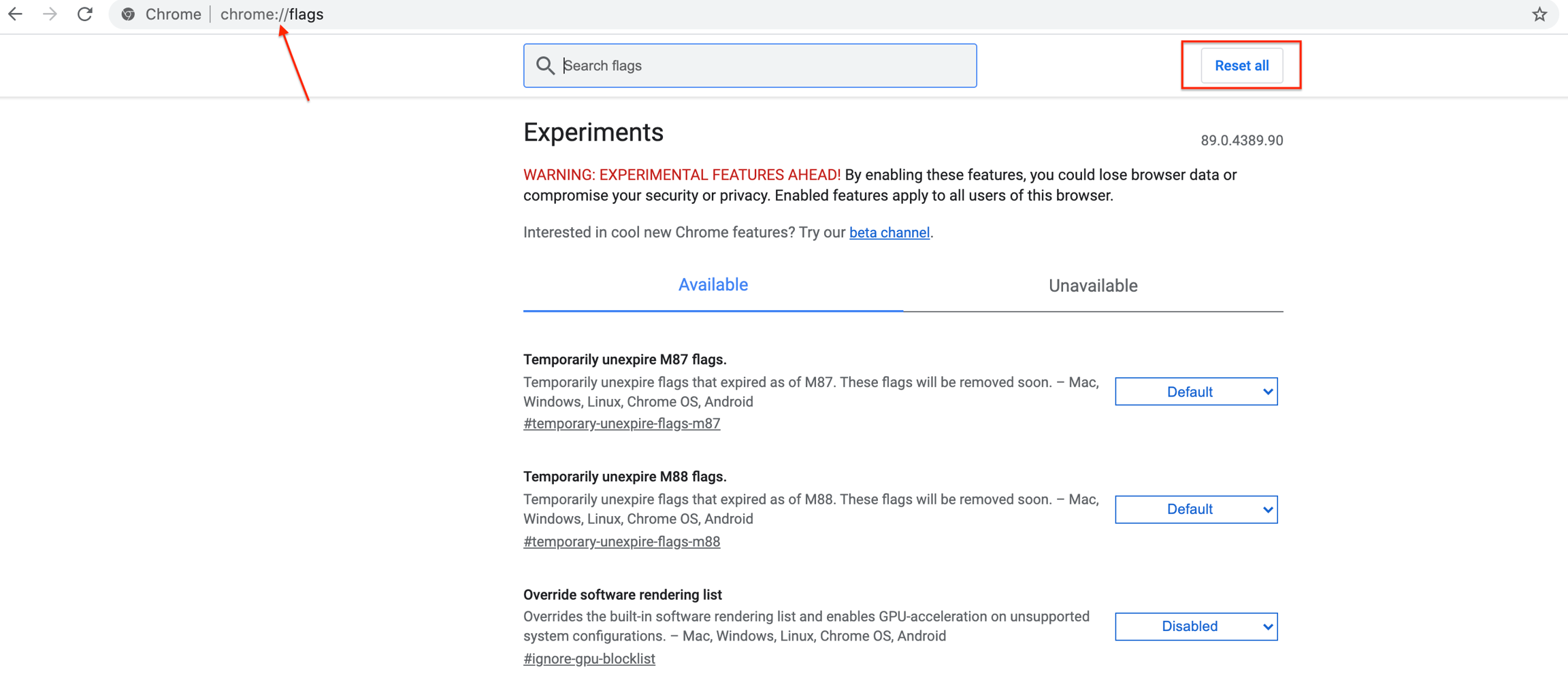 Step 4: Reset Chrome Flags.