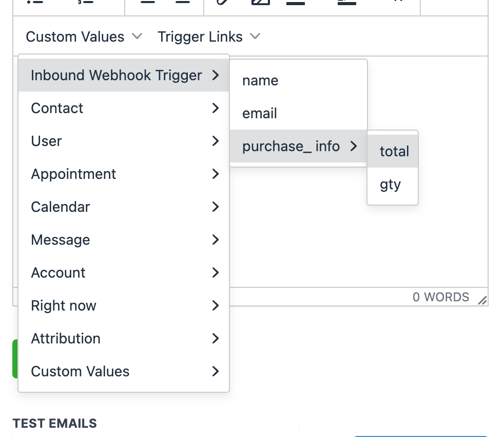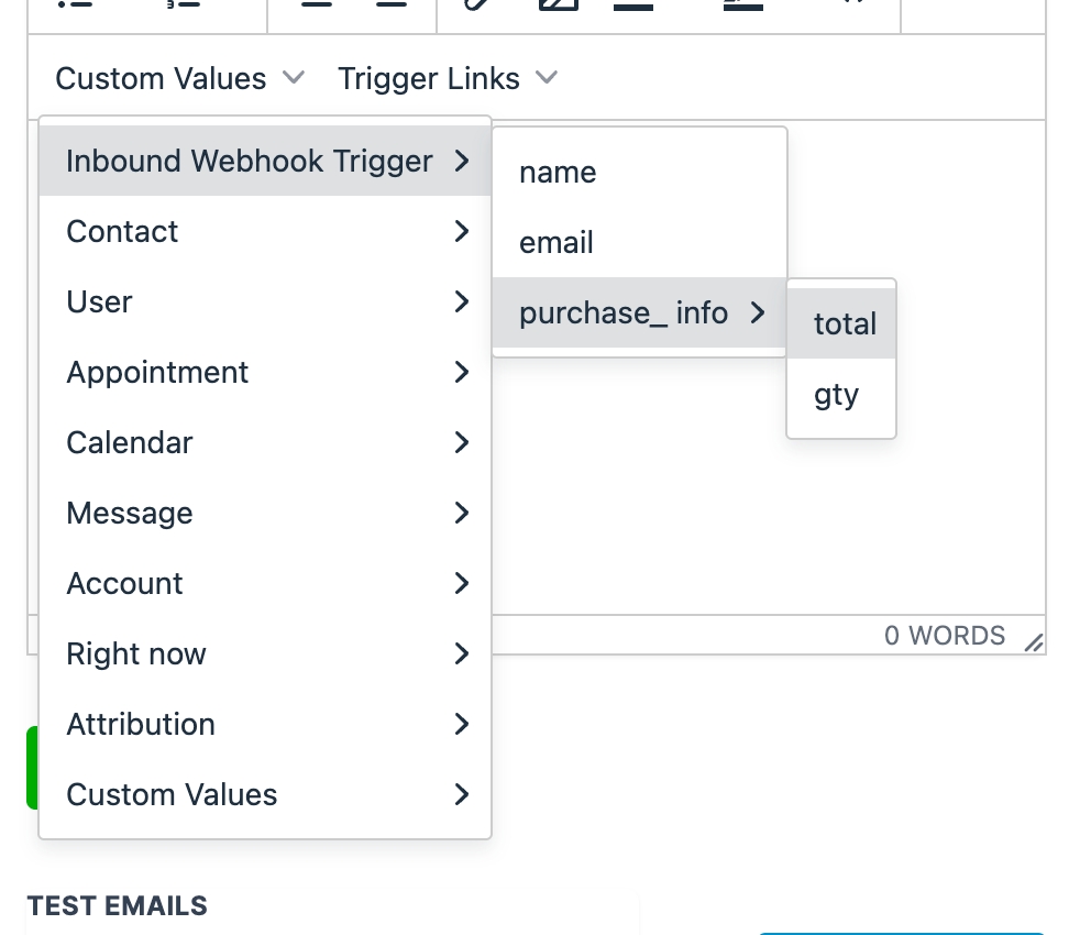 By completing the above steps, you can now use the data that you have received within the workflow as custom values in email, sms, if/else, etc.